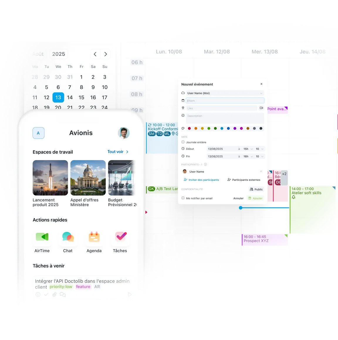L'agenda vit au cœur de votre espace de travail, aux côtés des documents, tâches et discussions. Tout centralisé pour une coordination parfaite.